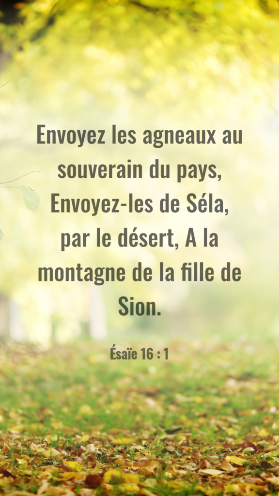 Encore Moab. Kaliméra mon frère, Kaliméra ma sœur. Kaliméra: bonjour en Grec langue dans laquelle le Nouveau Testament a été écrit. Nous lisons dans la Parole: ”Envoyez les agneaux au souverain du pays, Envoyez-les de Séla, par le désert, A la montagne de la fille de Sion”. Ésaïe 16 : 1. Le commentaire […]