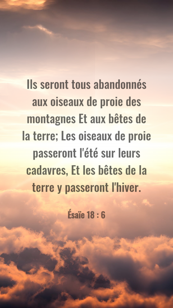 Le devenir sans commentaire Kaliméra mon frère, Kaliméra ma sœur. Kaliméra : bonjour en Grec langue dans laquelle le Nouveau Testament a été écrit. Ce matin nous lisons ”Ils seront tous abandonnés aux oiseaux de proie des montagnes Et aux bêtes de la terre; Les oiseaux de proie passeront l’été sur leurs […]