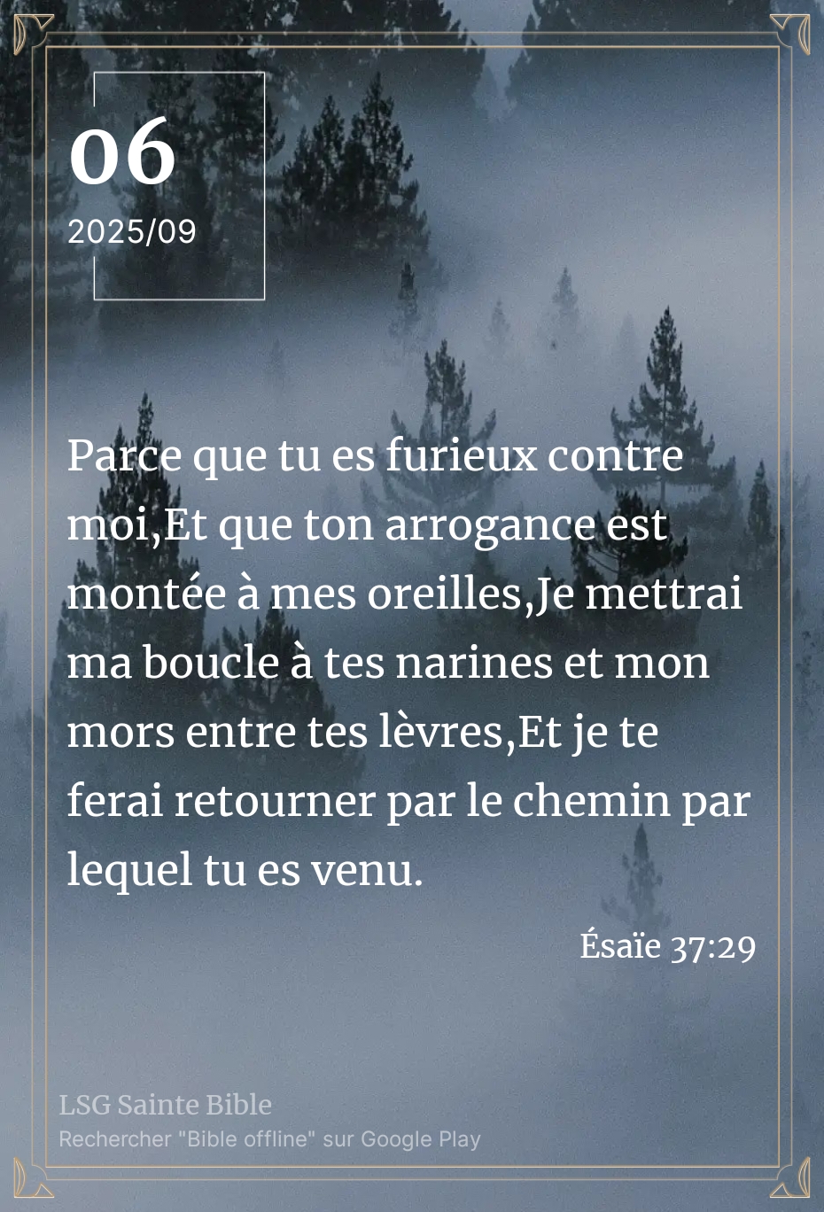 Et ouï personne ne peut se dresser contre l’Eternel car IL a tous les moyens pour nous arrêter. Ici l’Eternel s’attaque aux moyens de défense et d’expression des orgueilleux. L’Eternel compare même Sancherib à un animal qu’on dompte. Mon frère, ma sœur quand on s’attaque à Dieu, IL se moque bien de nous; Alors que la paix et la grâce de Dieu renouvellent l’intelligence de chacun.