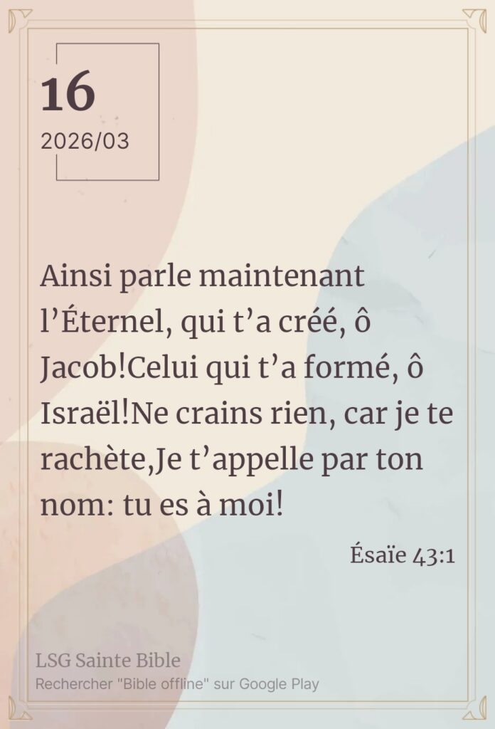 L’Éternel te rassure Kālai vanakkam mon frère, Kālai vanakkam ma sœur.Kālai vanakkam : bonjour en langue Tamoul. Ce matin, l’Éternel