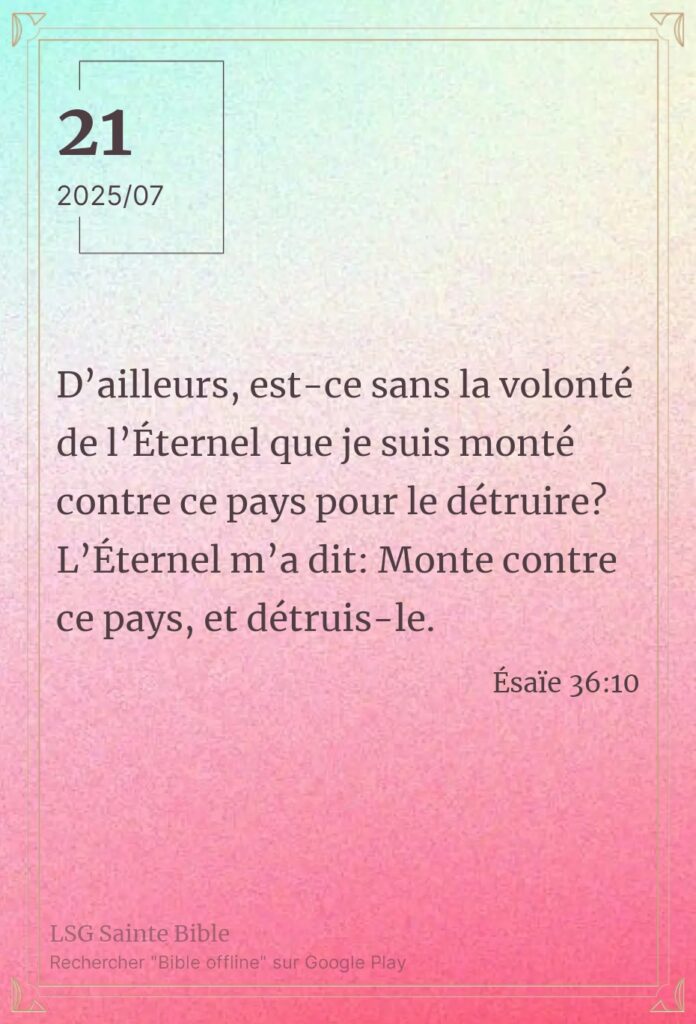 Objectif ultime Sabah Alkhayir mon frère, Sabah Alkhayir ma sœur.Sabah Alkhayir : bonjour en Arabe. Au moment où tu penses que Satan vise tout prêt, c’est en ce moment même qu’il cherche à détruire tes racines. Mon frère, ma sœur, c’est ce que la Parole nous rappelle ce matin. Nous lisons ”Éliakim, Schebna et Joach […]
