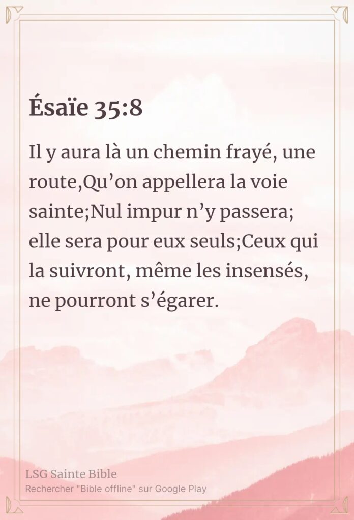 Le chemin pur. Sabah Alkhayir mon frère, Sabah Alkhayir ma sœur.Sabah Alkhayir : bonjour en Arabe. Quand l’Eternel établi Son règne, tout est en ordre. C’est une autre expérience qu’il ne faut pas perdre de vue et qu’il faut absolument vivre. Ce matin nous lisons ”Il y aura là un chemin frayé, une route, Qu’on appellera […]