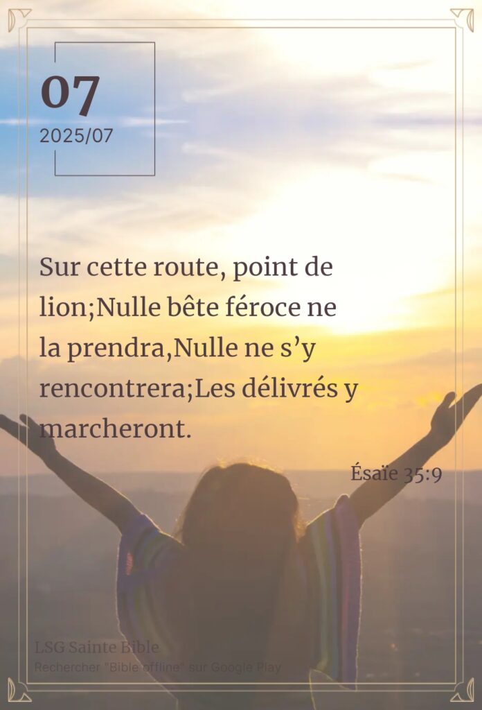 Une route sécurisée. Sabah Alkhayir mon frère, Sabah Alkhayir ma sœur.Sabah Alkhayir : bonjour en Arabe. Quand l’Eternel ouvre un chemin, on peut s’y lancer sans crainte. C’est un chemin sûr qui garantit la sécurité de tous ceux qui l’emprunte. Ce matin nous lisons ”Sur cette route, point de lion; Nulle bête féroce ne la […]