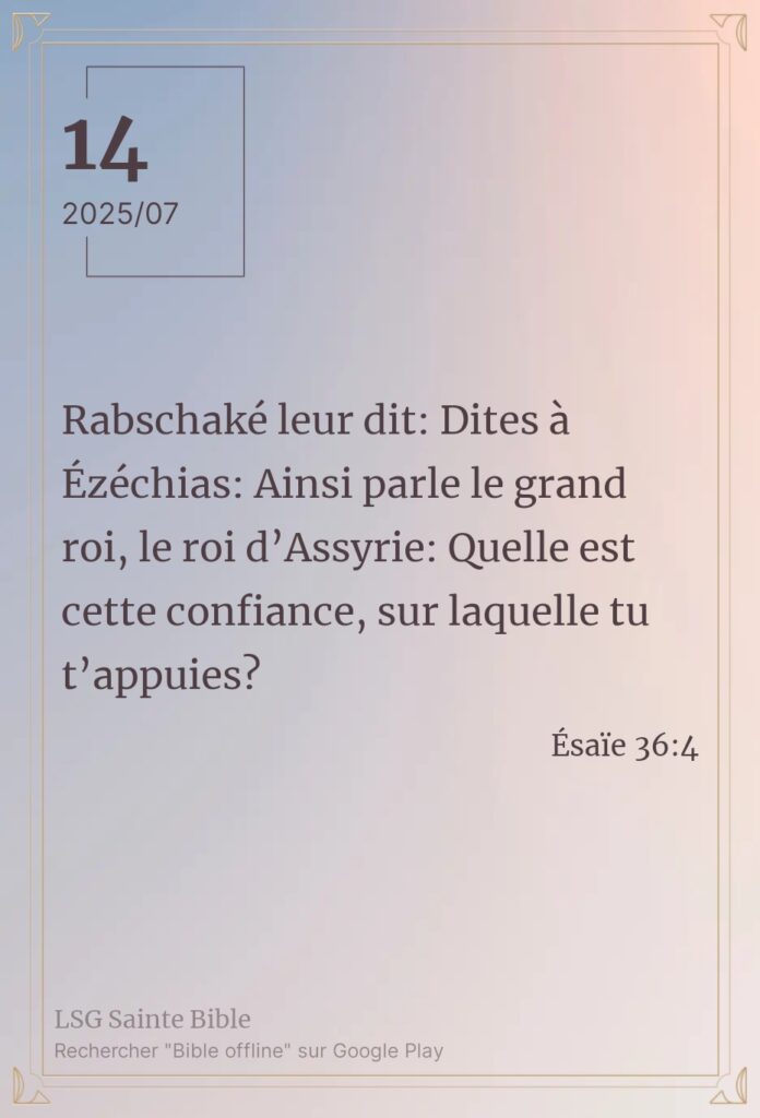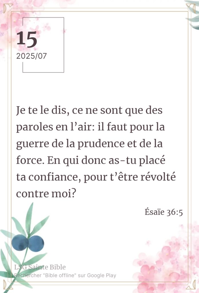 L’ennemi de notre paix.Sabah Alkhayir mon frère, Sabah Alkhayir ma sœur.Sabah Alkhayir : bonjour en Arabe. Constamment, l’ennemi de notre paix se mobilise contre nous. Il s’organise pour nous détruire. Il s’organise pour arracher notre liberté et notre paix interieure. Mais dans tout cela, l’Éternel ne nous abandonne pas. Nous lisons ”Et le roi d’Assyrie envoya […]