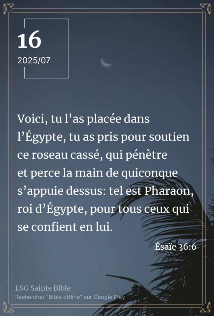 Erreur d’appréciation. Sabah Alkhayir mon frère, Sabah Alkhayir ma sœur. Sabah Alkhayir : bonjour en Arabe. Dans beaucoup de circonstances les gens commettent des erreurs d’appréciation parfois fatales. Il s’attaque aux gens sur la base de l’apparence, or l’apparence trompe. Ce matin nous lisons ”Voici, tu l’as placée dans l’Égypte, tu as pris pour soutien ce […]