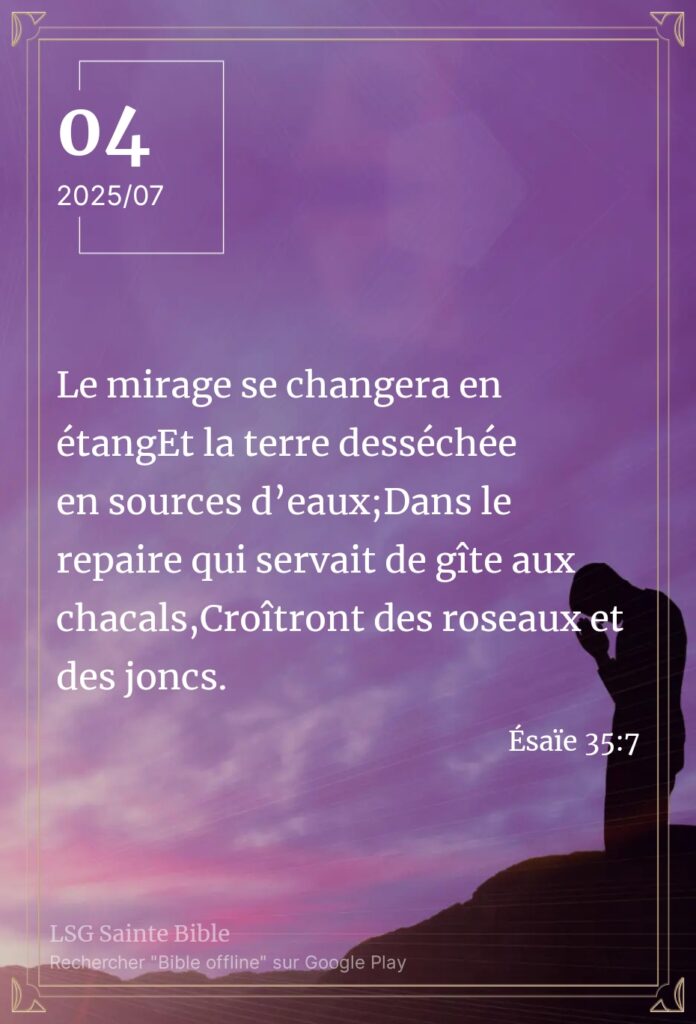 Une autre réalité. Sabah Alkhayir mon frère, Sabah Alkhayir ma sœur.Sabah Alkhayir : bonjour en Arabe. Dans un monde où il n’a plus de repère, où trouver le réconfort ? C’est dans la Parole où le Seigneur nous donne un nouvel espoir. Ce matin nous lisons ”Le mirage se changera en étang Et la terre […]