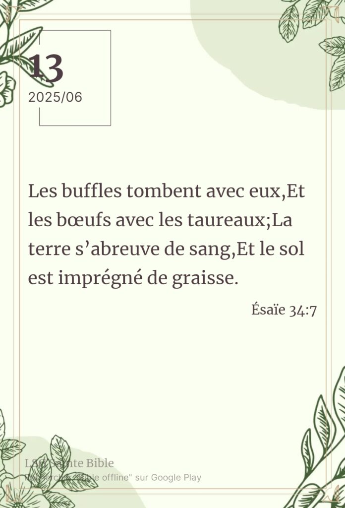 La grâce de l’Eternel. Sabah Alkhayir mon frère, Sabah Alkhayir ma sœur.Sabah Alkhayir : bonjour en Arabe. Ce matin, la Parole continue à nous enseigner. Nous lisons ”Les buffles tombent avec eux, Et les bœufs avec les taureaux; La terre s’abreuve de sang, Et le sol est imprégné de graisse”.Ésaïe 34:7. Mon frère, ma sœur, […]