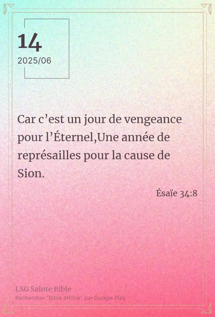 Pour toi. Sabah Alkhayir mon frère, Sabah Alkhayir ma sœur. Sabah Alkhayir : bonjour en Arabe. Pour le juste, l’Eternel est prêt à agir. IL fait l’impossible pour rendre tout possible pour toi. Nous lisons ce matin ”Car c’est un jour de vengeance pour l’Éternel, Une année de représailles pour la cause de Sion”. Ésaïe 34:8. Pour […]