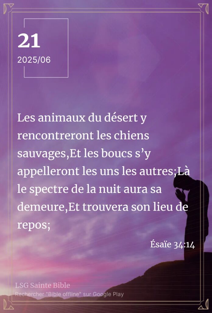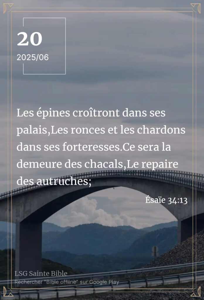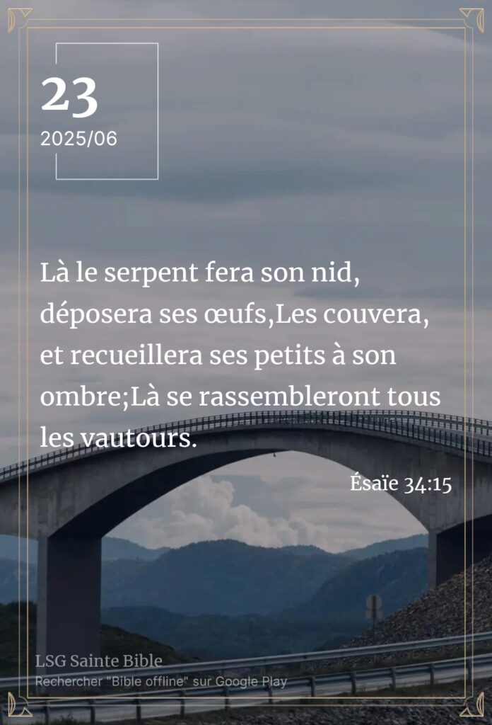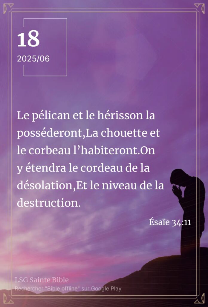 Une demeure inhabitable Sabah Alkhayir mon frère, Sabah Alkhayir ma sœur.Sabah Alkhayir : bonjour en Arabe. Ce matin, la Parole nous enseigne à nouveau. ”Là le serpent fera son nid, déposera ses œufs, Les couvera, et recueillera ses petits à son ombre; Là se rassembleront tous les vautours”. Ésaïe 34:15. Il est difficile d’imaginer comment […]