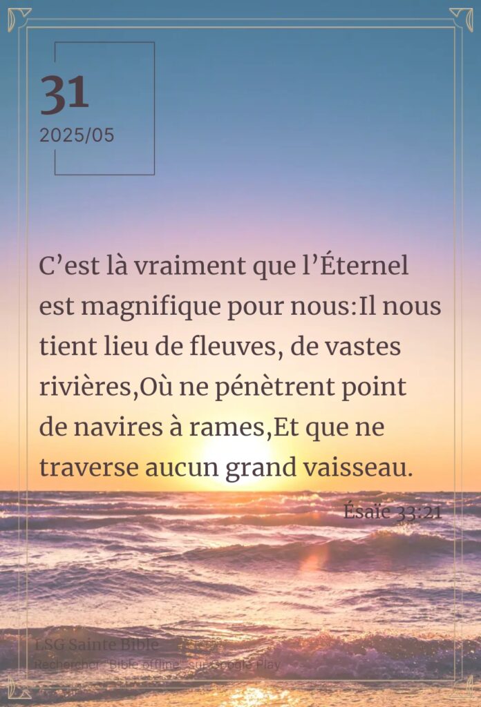Tout en LUI. Sabah Alkhayir mon frère, Sabah Alkhayir ma sœur. Sabah Alkhayir : bonjour en Arabe. L’Eternel mon Dieu a tout en LUI. C’est ce que la Parole nous rappelle ce matin. Nous lisons ”Car l’Éternel est notre juge, L’Éternel est notre législateur, L’Éternel est notre roi: C’est lui qui nous sauve”. Ésaïe 33:22. Celui […]