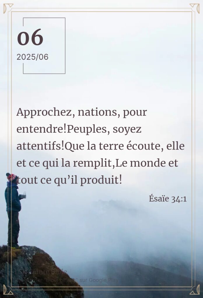 L’heure de l’écoute Sabah Alkhayir mon frère, Sabah Alkhayir ma sœur.Sabah Alkhayir : bonjour en Arabe. Il y a un temps pour toute chose. Ce matin la Parole nous rappelle un principe essentiel qui est l’écoute de Sa Parole. Nous lisons ”Approchez, nations, pour entendre! Peuples, soyez attentifs! Que la terre écoute, elle et ce […]