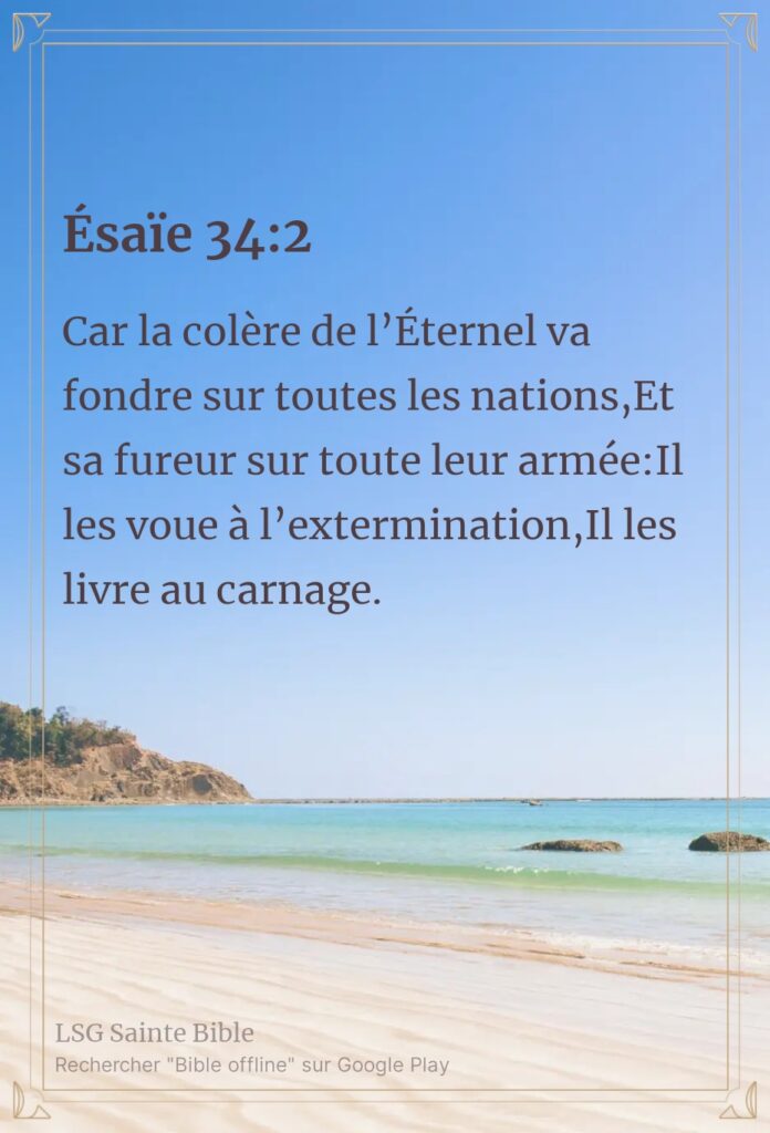 Sa colère arrive. Sabah Alkhayir mon frère, Sabah Alkhayir ma sœur. Sabah Alkhayir : bonjour en Arabe. Hier nous avons vu que l’Éternel veut nous parler. Sans connaître ce qu’IL veut nous dire, nous nous sommes rappeler Sa nature. IL est justice, donc n’a aucune base de mensonges en LUI. C’est pourquoi nous devons et pouvons […]