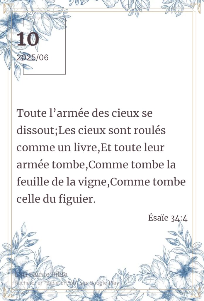 Le désespoir s’installe Sabah Alkhayir mon frère, Sabah Alkhayir ma sœur.Sabah Alkhayir : bonjour en Arabe. Quand on décide de s’opposer à Dieu, il faut s’attendre aux conséquences. Ce matin la Parole nous rappelle ce principe. ”Toute l’armée des cieux se dissout; Les cieux sont roulés comme un livre, Et toute leur armée tombe, Comme […]