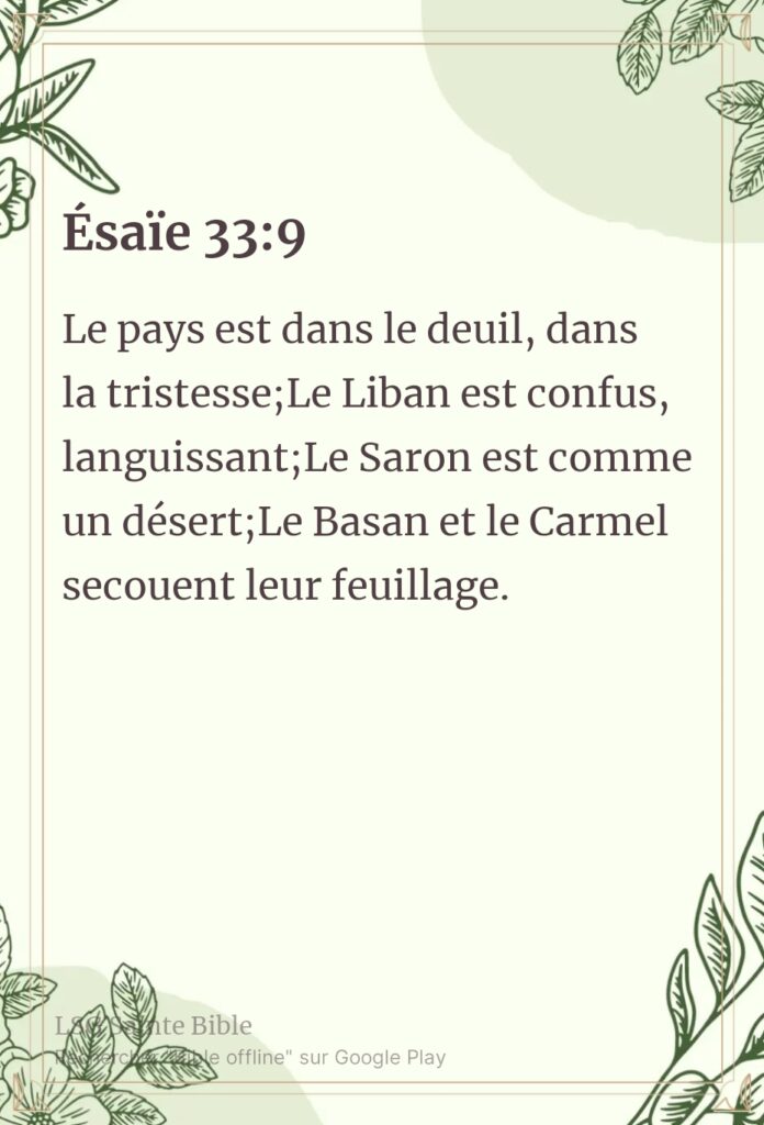 Les jours sombres Sabah Alkhayir mon frère, Sabah Alkhayir ma sœur.Sabah Alkhayir : bonjour en Arabe. Les jours de ceux qui s’opposent à l’Éternel seront sombres. Sombre de l’absence de Dieu, mais aussi de l’exercice de Sa colère. Nous lisons ”Le pays est dans le deuil, dans la tristesse; Le Liban est confus, languissant; Le […]