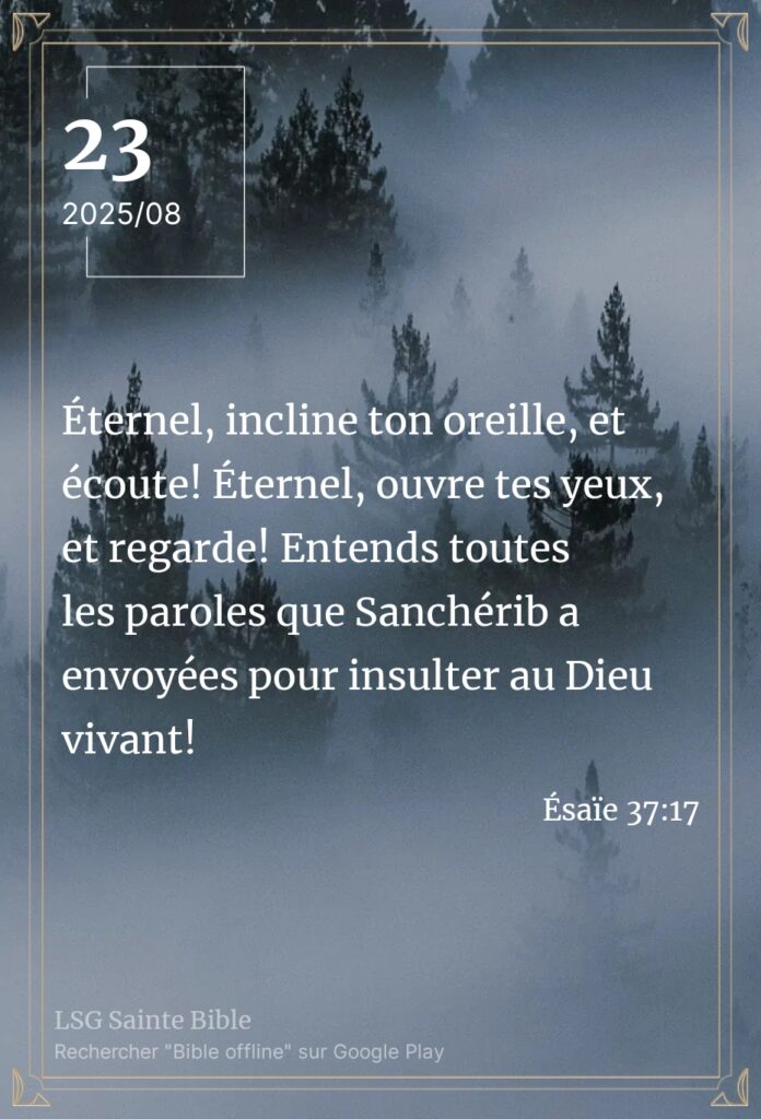 Ton signe Sabah Alkhayir mon frère, Sabah Alkhayir ma sœur. Sabah Alkhayir : bonjour en Arabe. La beauté de la relation avec le Seigneur, est que nous avons la liberté de LUI demander tout ce que nous voulons ( Jean 15:7, Matthieu 21:22). Ce matin je nous invite à nous inspirer de cet exemple. ”Et Ézéchias […]