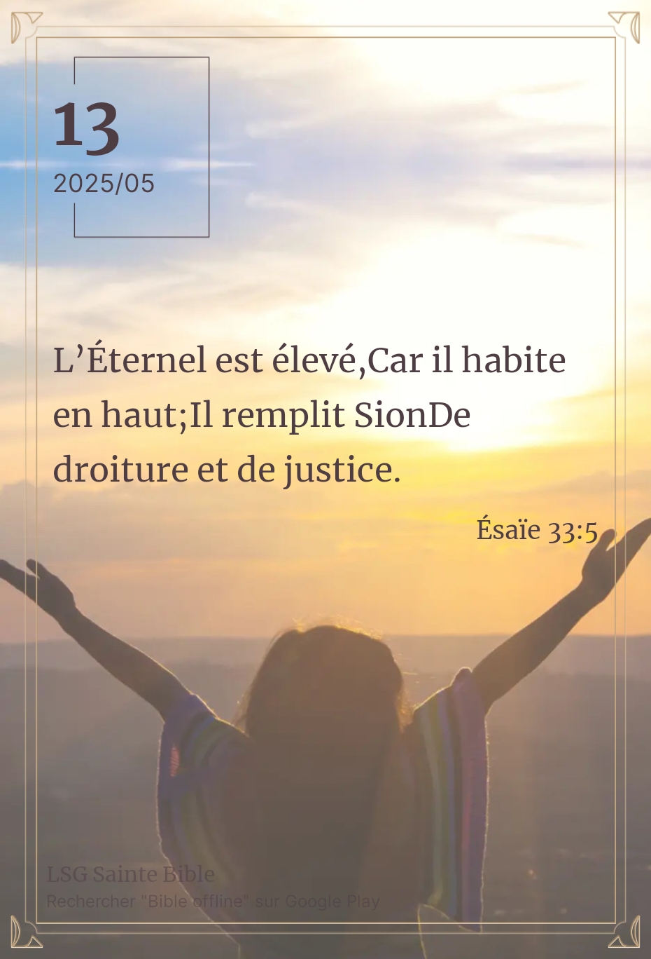 La position élevée de l’Éternel est stratégique. Celui qui est élevé en hauteur a la possibilité de voir plus loin que celui qui est en position inférieure. Il voit plus loin, ce qui lui permet d’anticiper les évènements. A l’image de la sentinelle qui veille en hauteur, ou encore les satellites d’observation, Dieu voit plus loin que nous. Cette position élevée LUI permet d’anticiper les évènements. Mais la position élevée de Dieu va au delà de cette image anecdotique. La Force de l’Éternel réside en LUI-MÊME. C’est ce qui LUI permet de bénir ou de maudire quelqu’un. En parcourant nos villes et villages, la position supérieure des sites anciens des colons, nous révèle l’importance de ce secret. Que ce soit Koulouba à Bamako, le Mamelon à Sikasso, ces vestiges anciens nous prouvent que le colon avait compris ce secret bien avant. C’est pourquoi il n’a pas cessé de conquérir l’espace à travers les satellites et l’exploration d’autres planètes. C’est aussi cette quête de pouvoir qui pousse certains à compromettre l’éternité pour une position élevée éphémère de ce monde. La participation à des sectes, aux loges mystiques, s’inscrive dans ce registre. Mais c’est une voie sans issue. Observez la fin de ceux qui vous ont précédé dans la mort. Voyez comment ils ont fini leur séjour terrestre.Les divinations ou encore les ”prophéties” des temps modernes ne s’inscrivent elles pas dans ce registre ? Pourquoi les gens courent derrière les ”prophètes”. Si chacun savait ce qui lui arriverait dans la minute qui suit, il prendrait des précautions. Mon frère, ma sœur, Dieu offre cette possibilité à Ses intimes. C’est cette bénédiction qu’IL envoie sur Sion. Jusqu’à présent le monde est suspendu à l’observation de l’accomplissement des prophéties faites à Daniel et à Jean dans l’Apocalypse. La droiture et la justice symbolisent cela. Comme à Sion, Dieu est disposé ce matin à déverser Sa Droiture et Sa Justice sur toi aussi si tu aspires à être compter parmi Ses intimes. Que décides-tu puisque c’est vraiment une question de choix personnel ? Que la paix et la grâce de Dieu renouvellent notre intelligence.