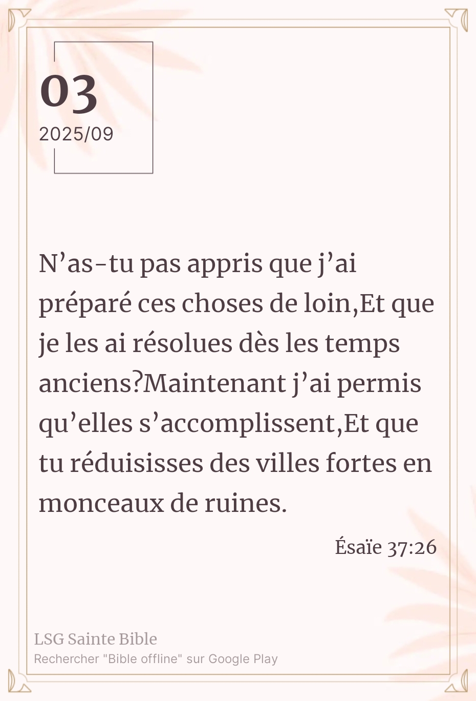 Que notre cœur puisse être un « terrain fertile », afin que Sa Parole puisse s’y enraciner, et produire du fruit en nos vies !Que la paix et la grâce de Dieu renouvellent notre intelligence et nos forces.
