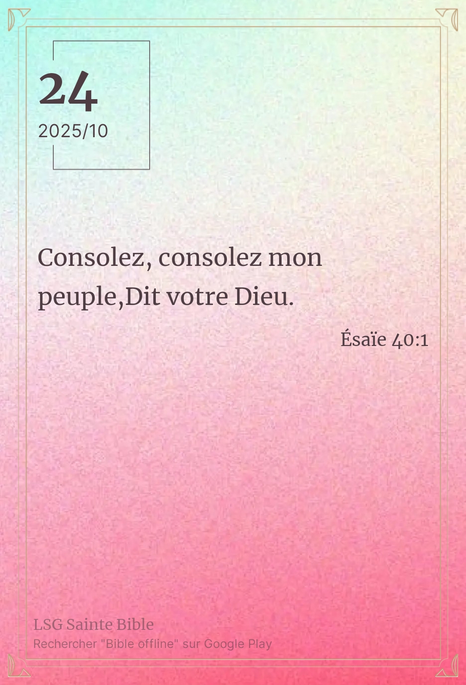 Ce matin l’Eternel nous confie la mission principale de consoler Son peuple. Par consoler nous pouvons comprendre que l’Éternel nous ordonne de réconforter Son Peuple. Il s’agit d’encourager, de redonner la force à celui qui n’en a plus. Mon frère, ma sœur, l’Eternel nous prouve ici qu’IL est sensible à tous les détails de notre vie. IL voit là où on ne peut pas voir. C’est pourquoi IL anticipe sur les aspects qui nous échappe. Ce matin, je ne sais pas quelle est ta condition ? J’ignore tout des difficultés que tu traverses, mais je sais une chose. Je suis convaincu d’une réalité, c’est que l’Éternel te voit là où tu est. IL prend soin de toi. IL anticipe les solutions à ton problème. Que la paix et la grâce de Dieu renouvellent tes forces.