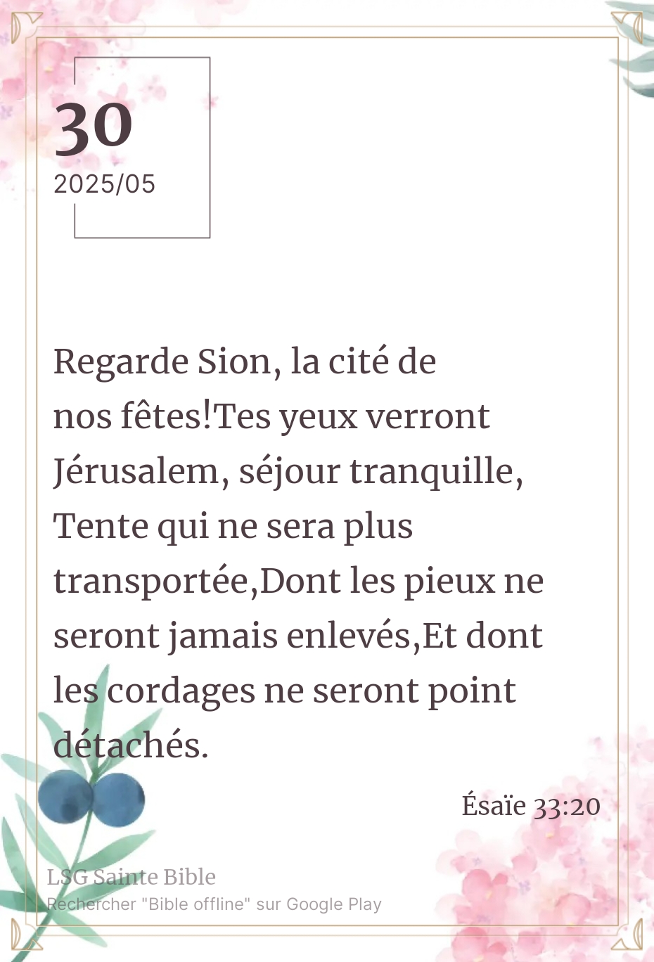 La traversée du désert n’est jamais une chose facile. Mais derrière cette étape difficile se trouve le repos et la restauration. Nous lisons ”Regarde Sion, la cité de nos fêtes! Tes yeux verront Jérusalem, séjour tranquille, Tente qui ne sera plus transportée, Dont les pieux ne seront jamais enlevés, Et dont les cordages ne seront point détachés”.Ésaïe 33:20.