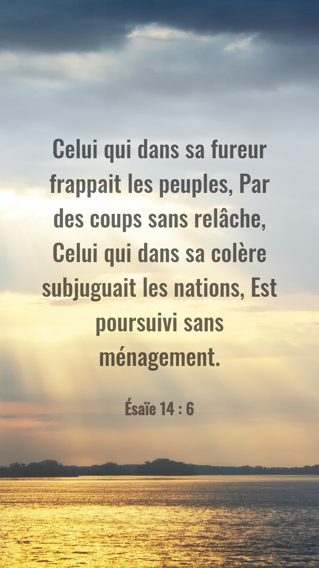 Avec Dieu, nos victoires ne sont pas des victoires partielles. Elles sont définitives car les combats sont conduits par Dieu LUI-MÊME. Mon frère, ma sœur c’est ce que la Parole nous rappelle ce matin. ”Celui qui dans sa fureur frappait les peuples, Par des coups sans relâche, Celui qui dans sa colère subjuguait les nations, Est poursuivi sans ménagement”. Ésaïe 14 : 6.