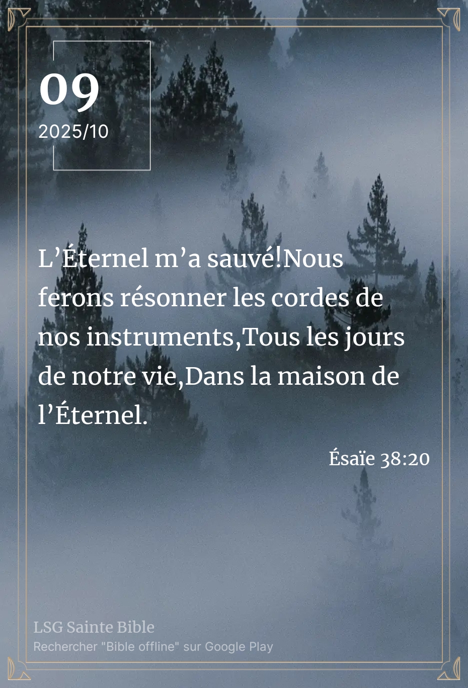 L’Eternel sauve et protège Ses enfants. Mon frère, ma sœur, la Parole rappelle ce principe ”L’Éternel m’a sauvé! Nous ferons résonner les cordes de nos instruments, Tous les jours de notre vie, Dans la maison de l’Éternel”. Ésaïe 38:20.