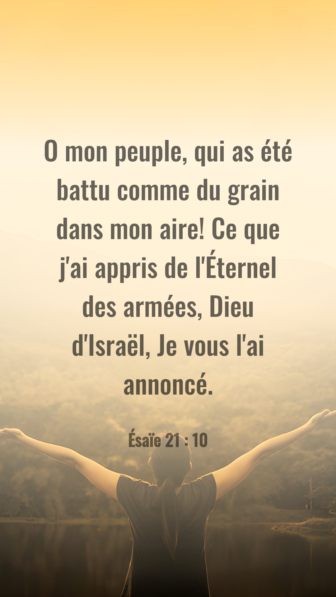 Quand on traverse des moments difficiles, on a l’impression que Dieu nous a oubliés. Pourtant c’est dans ces moments difficiles que Sa grâce se manifeste au plus profond. Mon frère, ma sœur, la Parole nous rappelle ce principe ce matin. Nous lisons ‘‘O mon peuple, qui as été battu comme du grain dans mon aire! Ce que j’ai appris de l’Éternel des armées, Dieu d’Israël, Je vous l’ai annoncé”. Ésaïe 21 : 10.Ce message s’adresse à ce peuple qui a été humilié. Humilié dans sa chair, car elle a été battue. Mais par qui, telle est la question légitime que l’on pourrait se poser. Un recoupement des différentes traductions, nous révèle que c’est l’Eternel LUI-MÊME qui est l’auteur. Ce châtiment quelles que soient les raisons, n’excluent pas ce peuple de l’amour de Dieu. On se rend compte que l’Eternel avait utilisé Babylone pour infliger cette humiliation à Son peuple. Ce qui est évident, Dieu a décidé de mettre fin à cette situation. Cette voix sonne comme une source d’espoir pour les opprimés comme toi et moi ce matin. Cette voix te dit que ta souffrance est finie. C’est une Parole certaine car c’est l’Eternel MÊME qui en est l’auteur. Alors pourquoi te laisse-tu abattre ? Pourquoi es-tu triste ? Ne regardes pas aux circonstances de l’heure, mais compte sur les promesses de l’Eternel. Ce matin rappelle toi de cette promesse ”Quand les montagnes s’éloigneraient, Quand les collines chancelleraient, Mon amour ne s’éloignera point de toi, Et mon alliance de paix ne chancellera point, Dit l’Éternel, qui a compassion de toi “. Esaie 54:10.