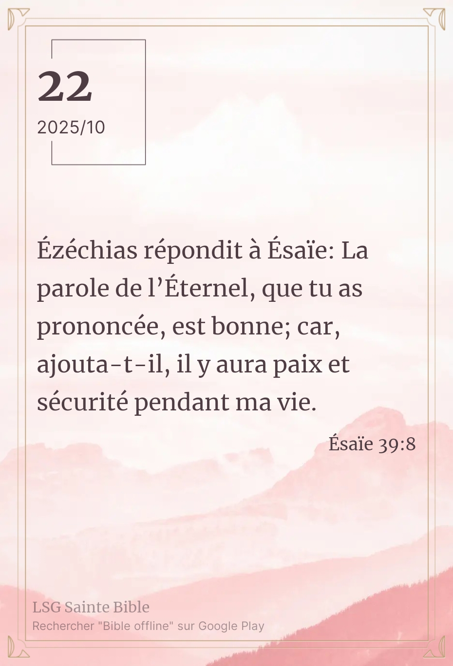 Nous découvrons une autre facette du roi Ezéchias. Visiblement ce n’est plus cet homme qui cherchait la face de Dieu dans tout ce qu’il faisait. Personnellement je m’attendais à ce qu’il tourne la face contre terre pour épargner sa descendance d’une telle humiliation, son royaume d’un tel désastre. Mais hélas, il nous affiche ce que le cœur de l’homme est réellement. Puisque ce mal n’arrivera pas pendant sa vie, ce n’est pas grave. Que les autres périssent après lui, ce n’est pas son problème. Voici le raisonnement de l’homme. N’est-ce pas ce qui caractérise notre société de nos jours ? Puisque le mal ne me concerne pas ce n’est pas bien grave, je continue mon chemin. Mon frère, ma sœur, c’est ce mal qui ronge notre société. Chacun agit pour ses propres intérêts, et peu importe ce qu’il adviendra à l’intérêt public. Malheureusement ce mal est beaucoup amplifié dans l’Eglise de Jésus-Christ. Chacun agit pour ses intérêts. Cela étouffe la vérité et bloque l’exercice de l’amour véritable. N’est-ce pas ce que Daniel avait prophétisé ? ”C’est pourquoi, lorsque vous verrez l’abomination de la désolation, dont a parlé le prophète Daniel, établie en lieu saint, -que celui qui lit fasse attention!”. Matthieu 24:15.