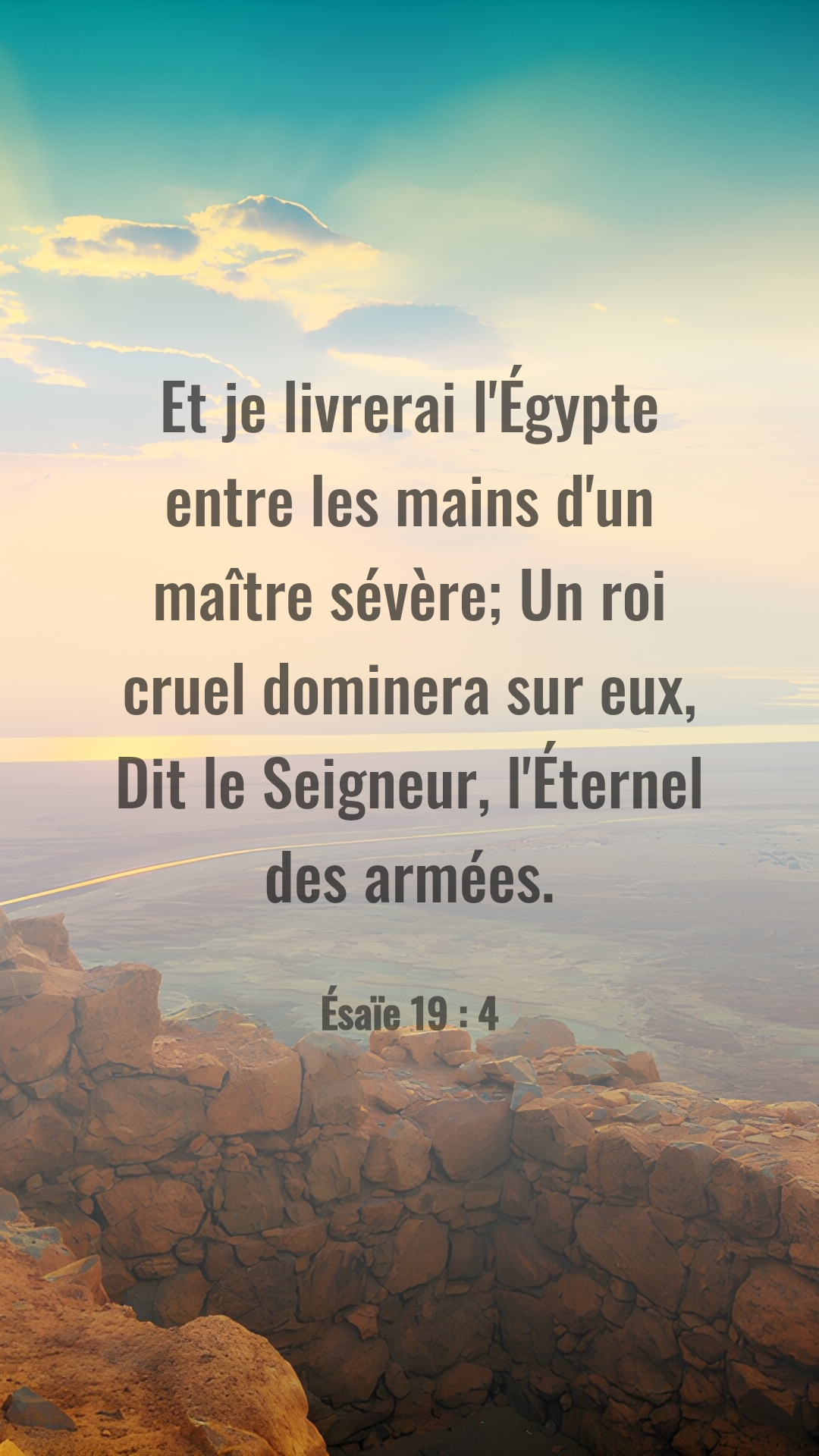 Il y a des situations qui nous perturbent par moment. Par exemple, quand un malheur arrive à un homme de bien ou autrement celui qui respecte les droits des autres. De même, nous sommes surpris de voir un homme méchant conduire un peuple pendant des années. Pourquoi Dieu ne met-IL pas immédiatement fin à un tel régime ? Pourquoi Dieu n’abandonne pas un tel homme ? Ces questions perturbent le plus souvent. Ce matin la Parole nous donne une orientation. Nous lisons ” Et je livrerai l’Égypte entre les mains d’un maître sévère; Un roi cruel dominera sur eux, Dit le Seigneur, l’Éternel des armées”. Ésaïe 19 : 4.