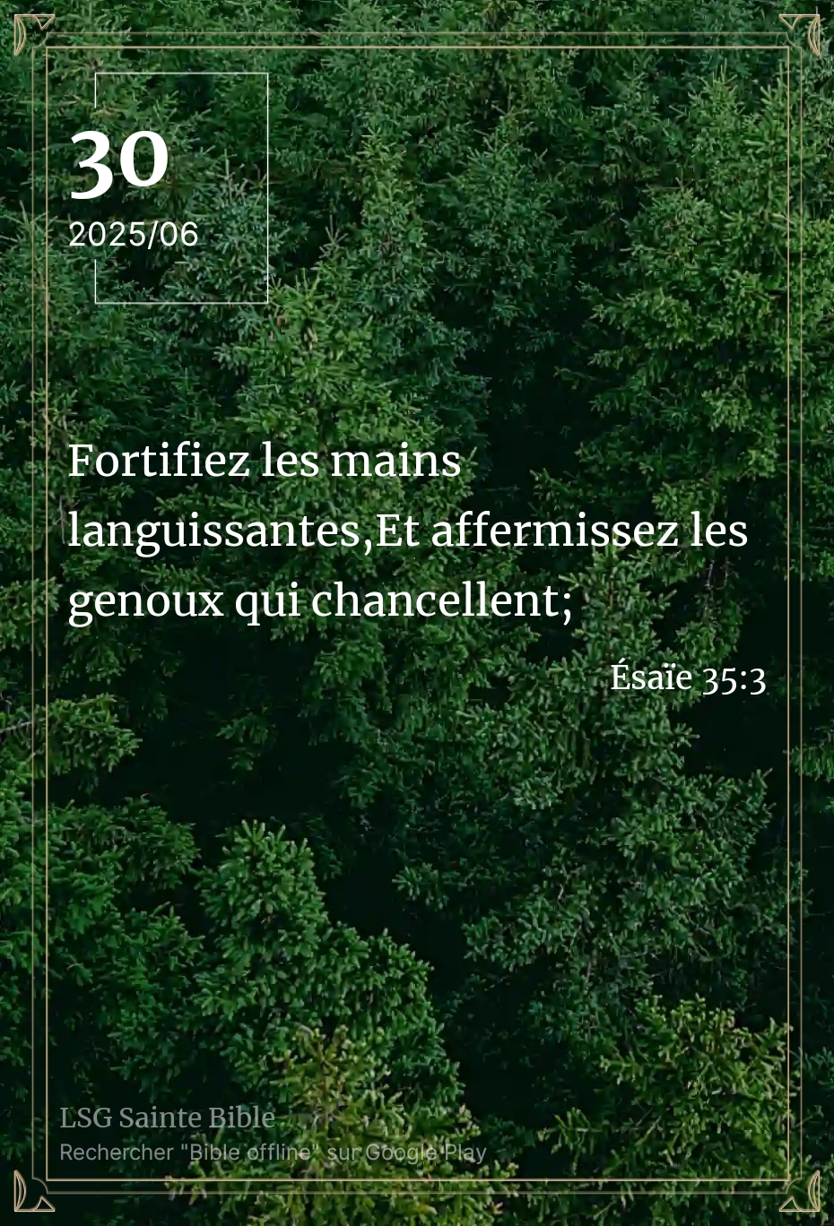 Il s’agit ici d’une invitation à la persévérance et à la constance. Les mains languissantes font référence à la fatigue et au découragement dans l’œuvre de la louange et de l’adoration. Ce matin, la Parole nous encourage à prendre un nouveau départ, un nouveau souffle dans notre relation avec le Seigneur. Le comment, nous est rapporté ici clairement. Il faut affermir ses genoux en bannissant le doute et l’hésitation. Mon frère, ma sœur, la Parole est notre force, notre conseiller et notre consolation. Je ne sais pas comment tu vis ce matin ? Je ne sais pas quelles sont tes difficultés ? J’ignore tout de ton niveau de découragement, mais ce qui est clair, l’Éternel Dieu, fidèle à Ses promesses t’invite à renouveler tes forces et à avancer. Je ne peux que suivre la même cadence en t’invitant à vivre dans l’espérance en renouvelant tes forces et à avancer. Courage, que l’Éternel te bénisse richement.